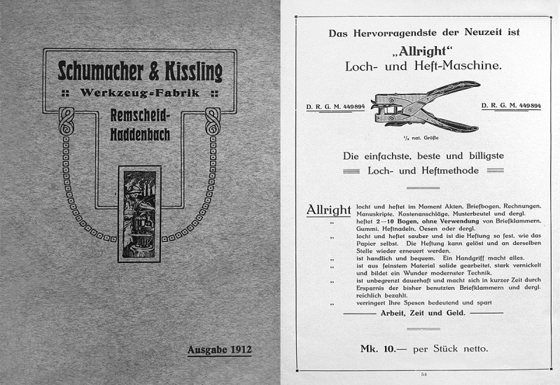 Ya en 1914 se publicó el primer catálogo en francés, que contenía también numerosas herramientas para las que Heinrich Kissling había solicitado sus propias patentes (D.R.G.M. - "Deutsches Reich Gebrauchsmuster").